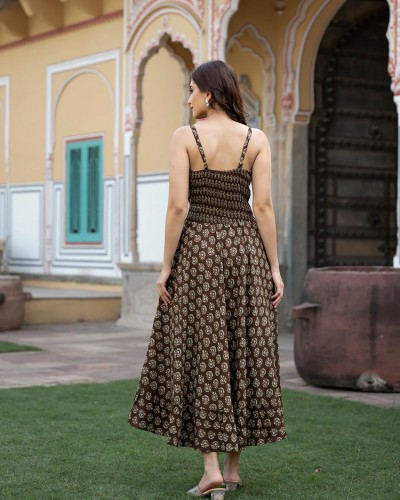This Divena Brown Floral Print Pure Cotton Fit & Flare Dress The fit and flare style is flattering, accentuating the waist while allowing for a flowy skirt that moves beautifully. this floral print adds a fresh, cheerful vibe, perfect for spring or summer outings.